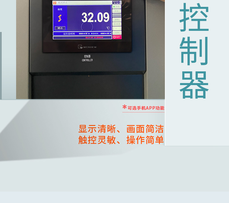 智能管理:7寸触摸屏编程,支持100组程序存储,数据可导出分析。